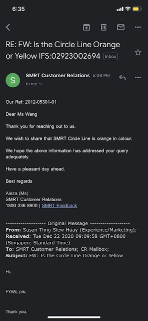 So I don’t know how many were persuaded by LTA’s response on Christmas Eve to a Mothership article wondering whether the Circle Line is yellow or orange.